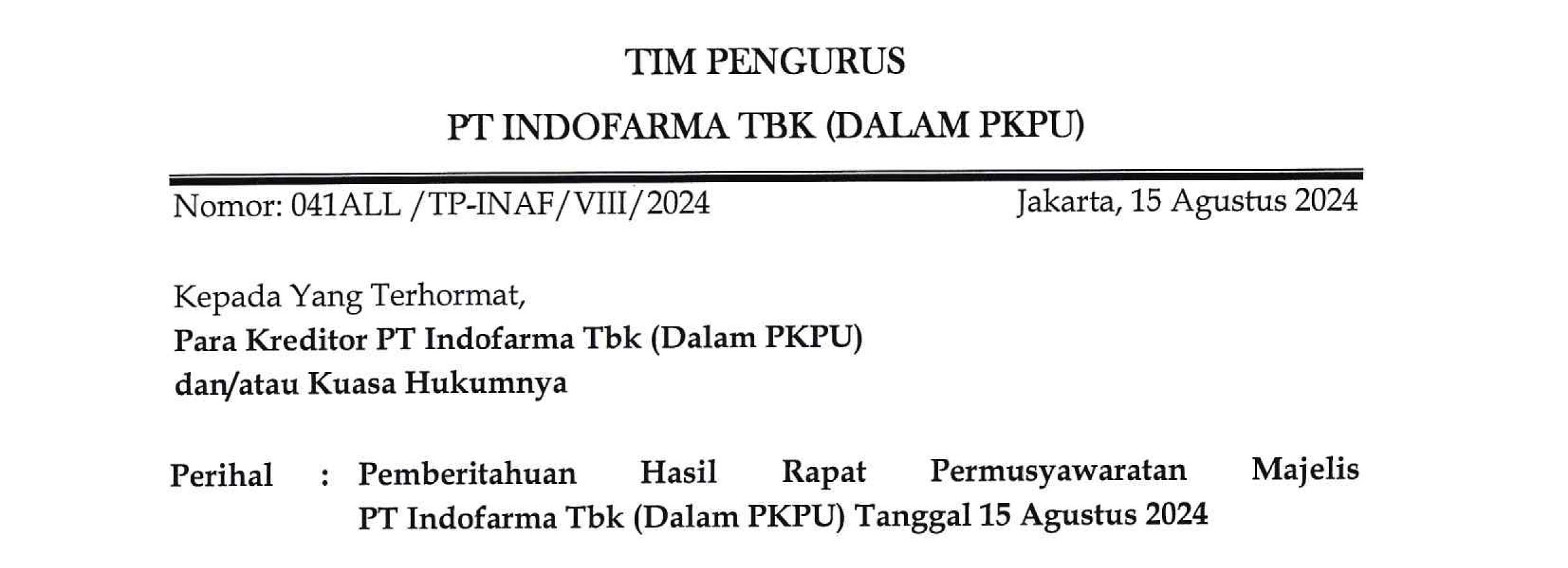 UNDANGAN RAPAT PEMBAHASAN RENCANA PERDAMAIAN PT INDOFARMA TBK (dalam PKPU)